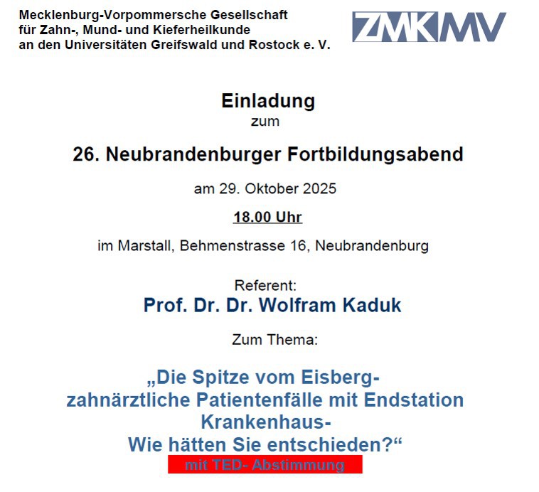 Einladung zum 26. Neubrandenburger Fortbildungsabend